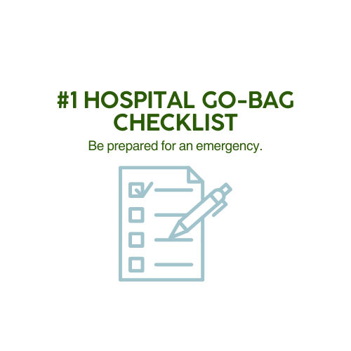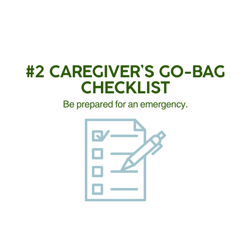 Go-bag checklists for the ill person and the caregiver, plus recommendations for actions upon admission to the hospital.